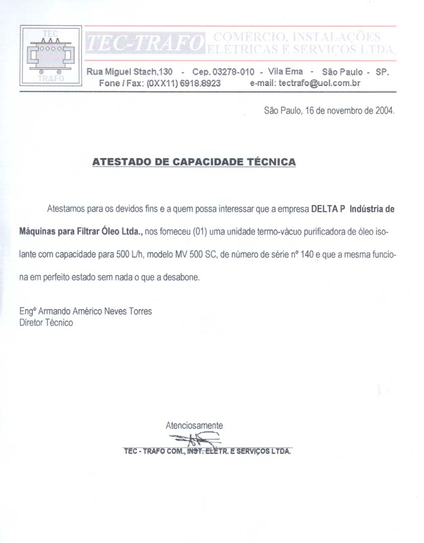 Com o propósito de atender cada vez melhor às necessidades de nossos clientes, ao concluirmos um trabalho, solicitamos que esses nos confiram um atestado de capacidade técnica.